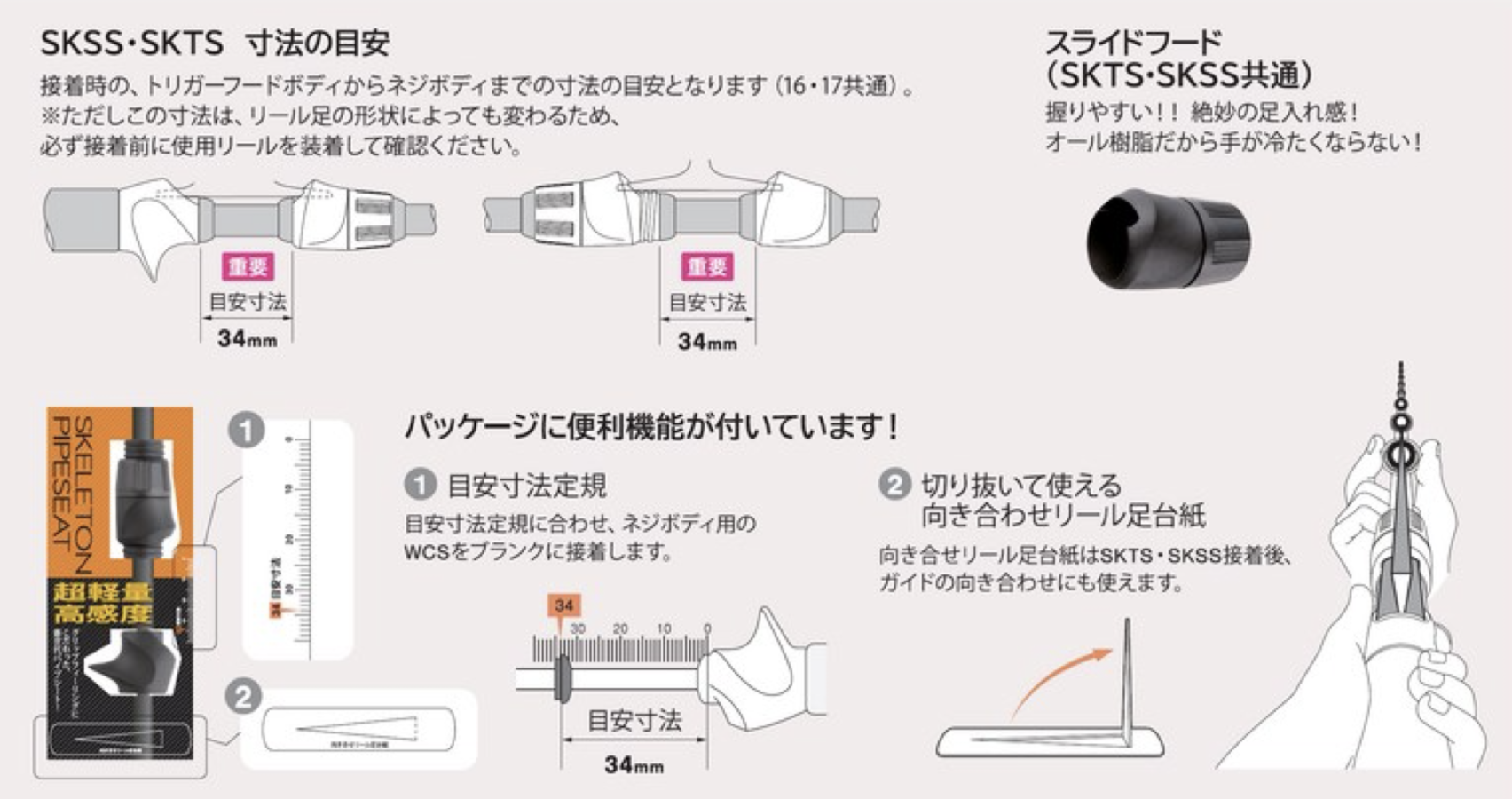 中・小型スピニングリール用。ルアーロッド、船小物用竿 など